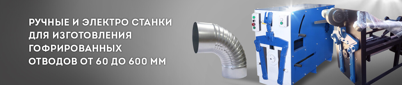 Гибка гофроколена – выполняет обработку труб круглого и прямоугольного сечения, изготовленных из тонколистового металла. Из металлического листа подготавливают заготовки по необходимым размерам и пропускают поочередно через коленогиб.